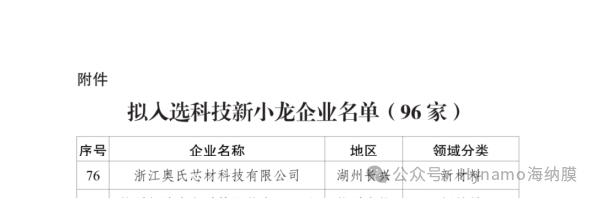 近日,浙江省高新技术企业协会正式公示2025年度“浙江省科技新小龙企业”名单,全省共96家科技型企业脱颖而出。其中,浙江奥氏芯材科技有限公司凭借其在高端分离膜材料领域的创新实力与产业化成果,成功入选新材料领域代表企业,标志着公司在核心技术突破与产业引领方面获得了省级层面的高度认可。